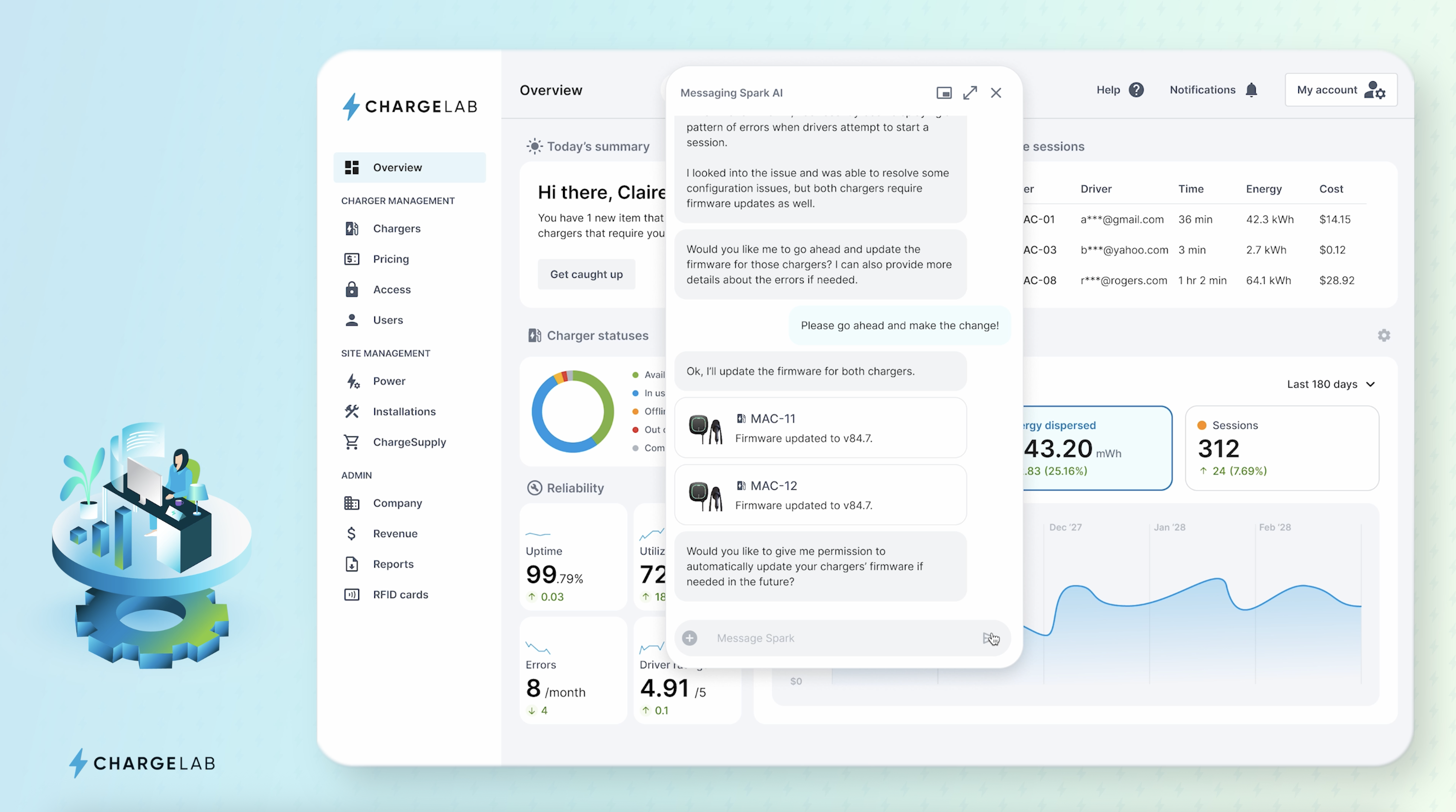 Led end-to-end design of EV charging management products, from initial designs and research, to deployment on over 10,000 EV chargers across North America.